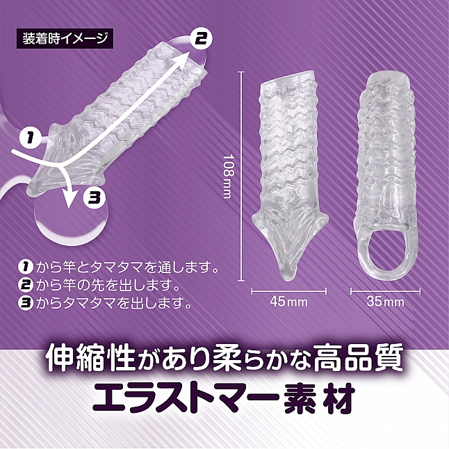 除了增大增粗外,該套的紋也讓你攻擊力大增!並且頭部露出讓你能享受快感,所以並不能當做安全套使用。