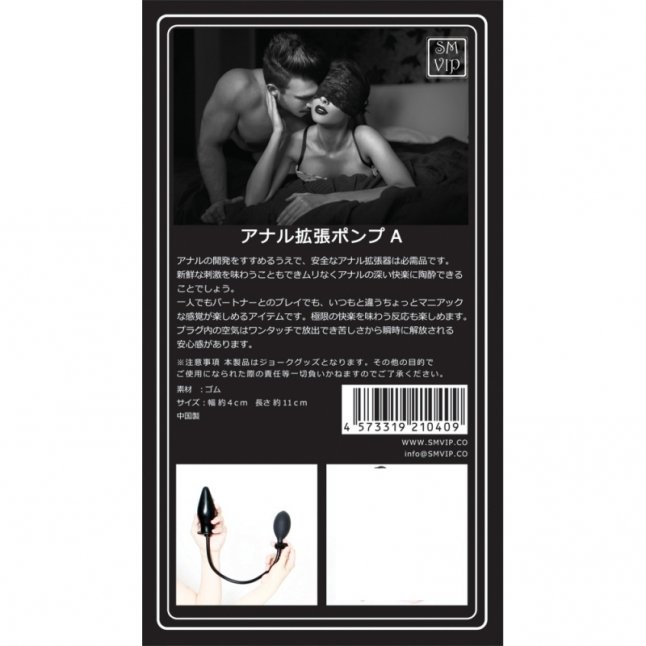 SM VIP - 充氣式後庭塞,肛塞位置以橡膠製成,極具彈性,非常厚實,軟硬適中,插入長約10cm,充氣後直徑可達 4cm!你可在充氣前先放進後庭,減低進入時的不適感,之後再慢慢充氣打滿,感受如同在內面慢慢漲大的神奇感覺!
